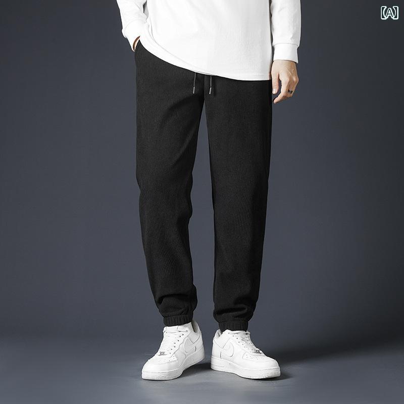 スウェットジョガーパンツ メンズ コーデュロイ ルーズ 裏起毛 秋冬 シンプル ドローストリング ウエスト紐 スタイルアップ 脚長効果 通気性 快適 カジュアル ブラック ダークグレー