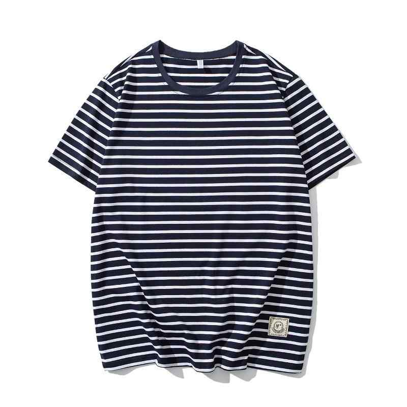Tシャツ 男性用 大きいサイズ ラウンドネック 半袖 コットン ストライプ柄 ゆったり 普段使い 部屋着 スポーティー 通気 抗菌 ホワイト ブルー レッド ブラック オレンジ ピンク系 L XL 2XL 3XL 4XL 5XL 6XL 7XL 8XL