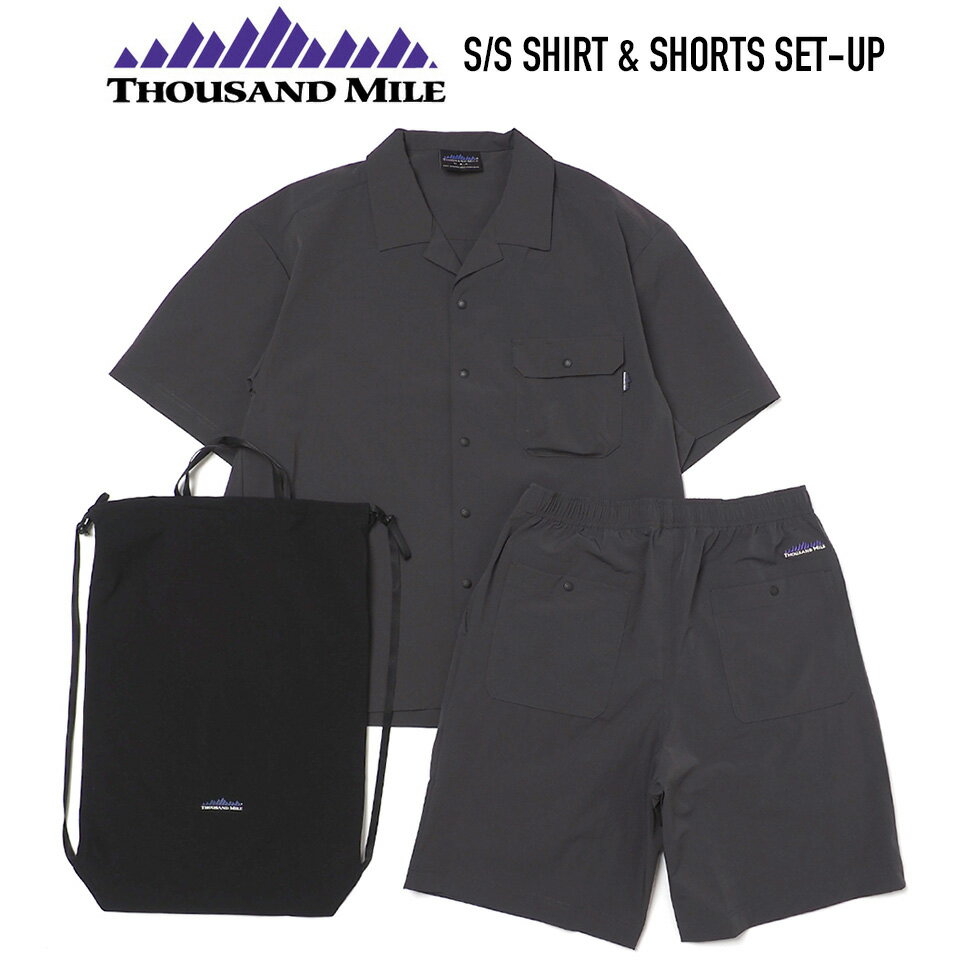 THOUSAND MILE (サウザンドマイル) S/S SHIRT & SHORTS SET-UP シャツ ショーツセットアップ 撥水 速乾 CHARCOAL