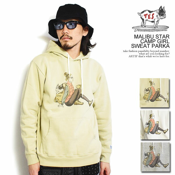 ザエンドレスサマー The Endless Summer TES テス MALIBU STAR CAMP GIRL SWEAT PARKA マリブ スター キャンプガール スウェットパーカー 裏起毛 ロングスリーブ パーカー ベージュ グレー 日本製 サーフ 春 秋 冬 ユニセックス TEE 2774327 2color 39ショップ 送料無料