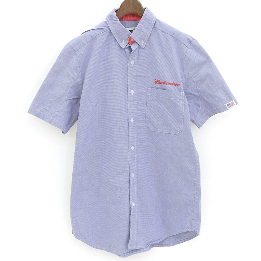 MPG ボタンダウン ワークシャツ 半袖 "Budweiser・BUD LIGHT"刺繍 サイズ 16-16 1/2 ブルー系 【古着】 古着 【中古】 中古 mellow 【古着屋mellow楽天市場店】