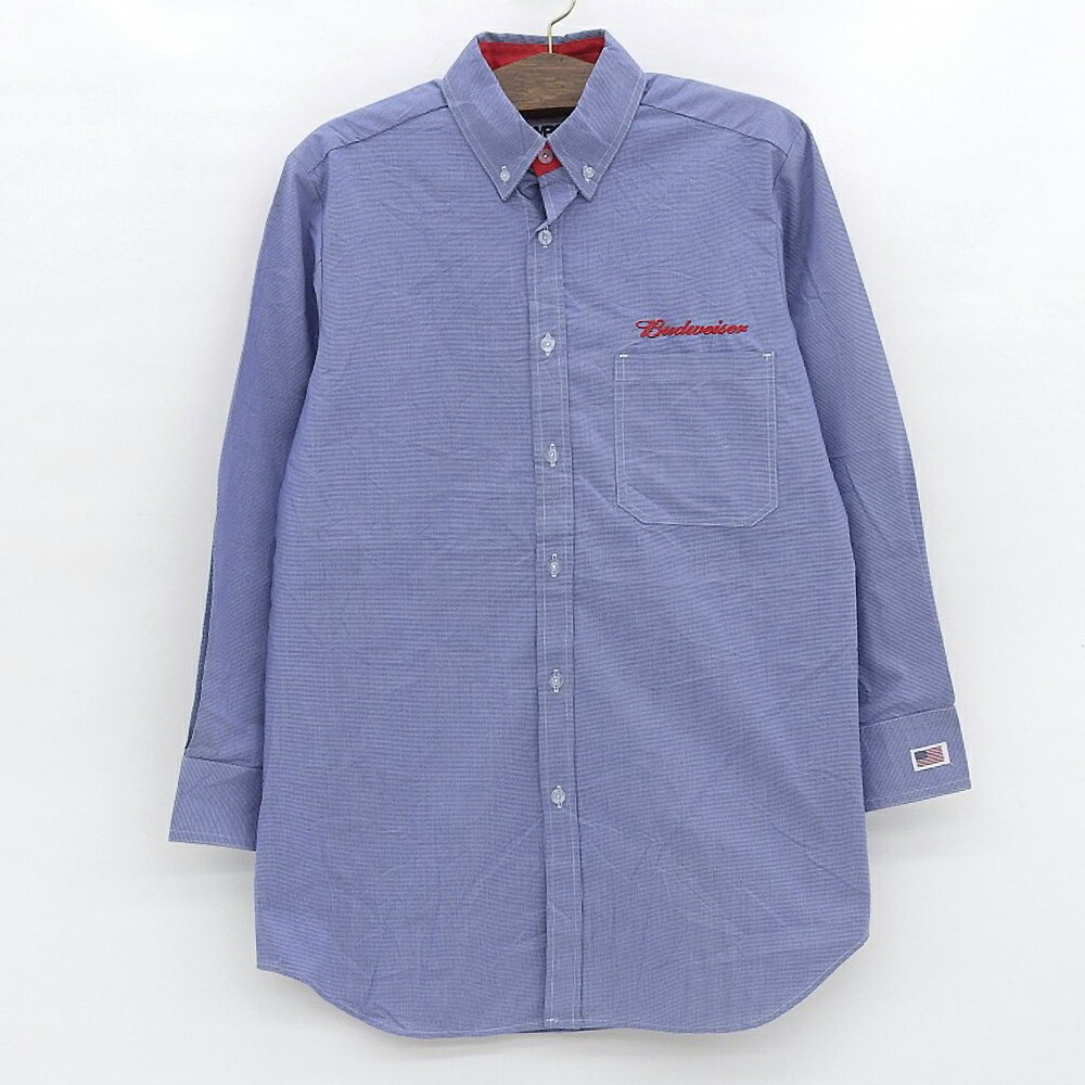MPG "バドワイザー/Budweiser" 刺繍入り ボタンダウン ワークシャツ 長袖 サイズ:16/33 ブルー 【古着】 古着 【中古】 中古 mellow 【古着屋mellow楽天市場店】