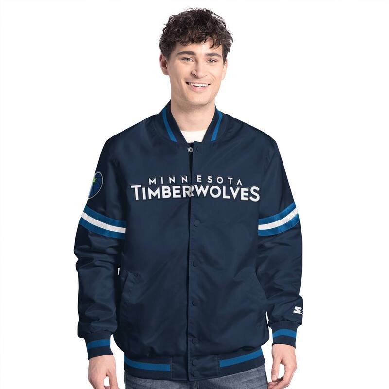 スターター メンズ アウター ジャケット・ブルゾン Men'starter Navy/Blue Minnesota Timberwolvescout Full Snap Varsity Jacket Mtw Navy ネイビー