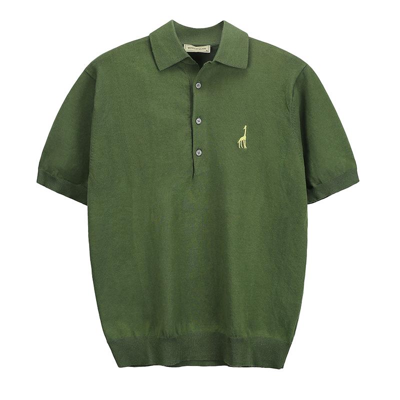 ポロシャツ 半袖 メンズ 夏 刺繍 襟付き 三つボタン ニット トップス スリムフィット シンプル 上品 大きいサイズ カジュアル 普段使い 青 緑