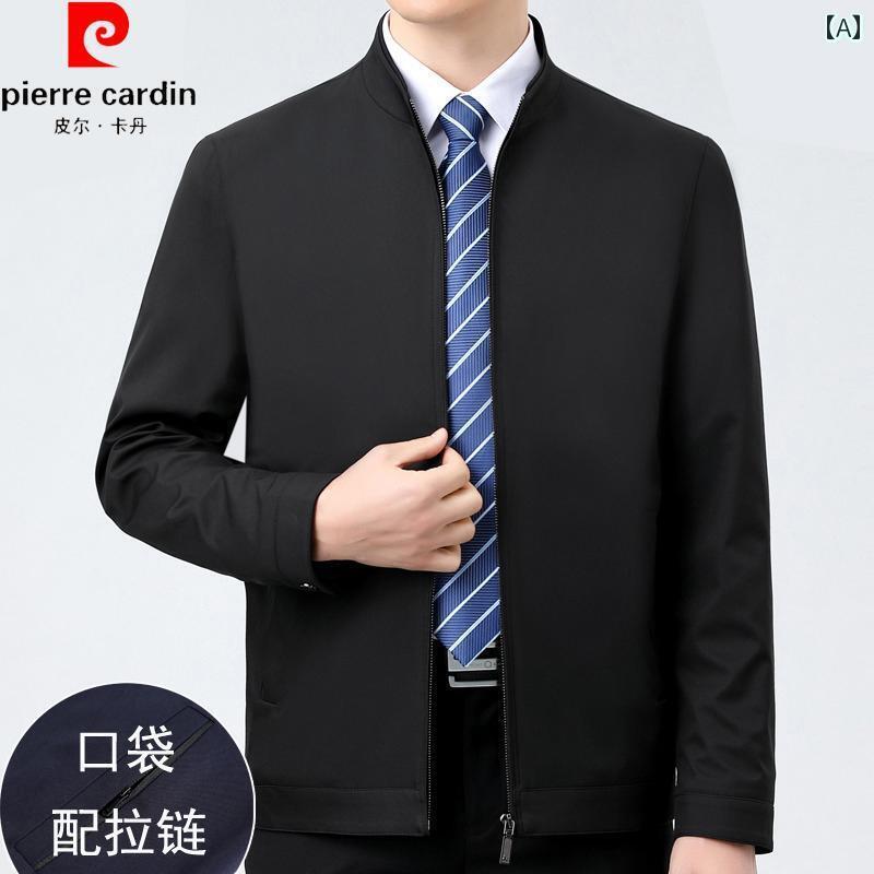 レザー ジャケット おしゃれ ピエールカルダン 春秋 中年 男性 スタンドカラー ジャケットお父さん 桑 絹 幹部 リーダー ジャケット