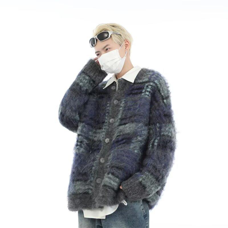 ニット カーディガン メンズ 秋冬 Vネック 長袖 無地 レトロ 配色 セーター トップス 普段使い 部屋着