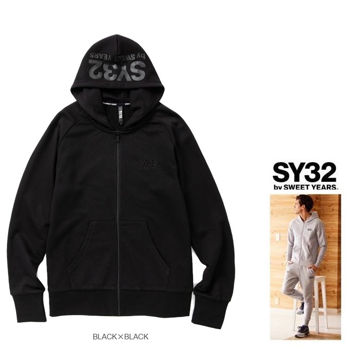 SY32 by SWEET YEARS【 スィートイヤーズ 】TNS1703-2 BKBK REGULAR ZIP HOODIEフード BIGロゴ・ZIPパーカーBASIC ZIP HOODIEcolor:【 BLACK×BLACK 】ブラック×ブラック