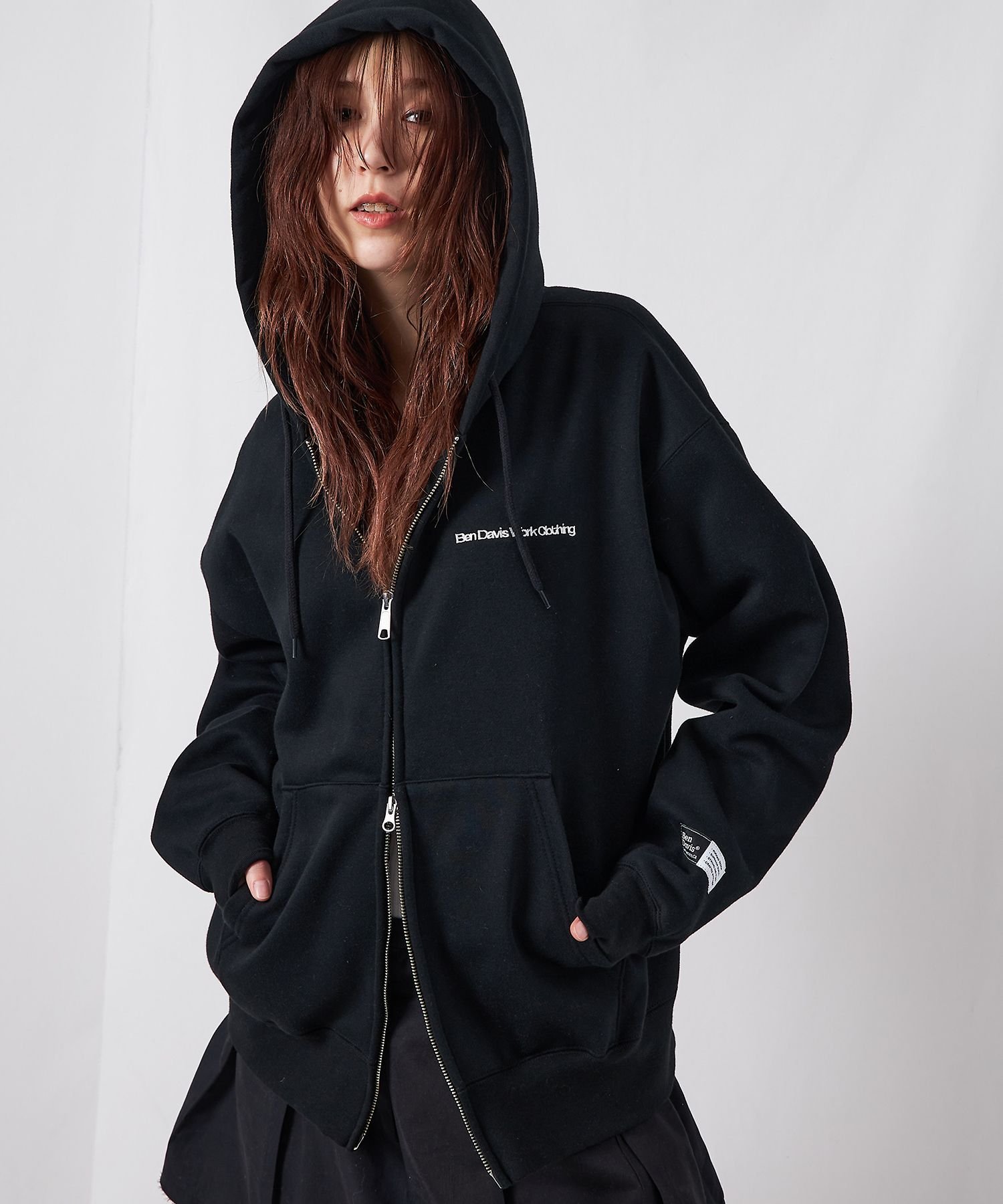 BEN DAVIS / WHITE LABEL 【BEN DAVIS(ベンデイビス)】WALL TAGGING ZIP HOODIE / フーディ スウェット ジップパーカー ワイドシルエット ナバル トップス パーカー・フーディー ブラック ホワイト ブラウン【送料無料】