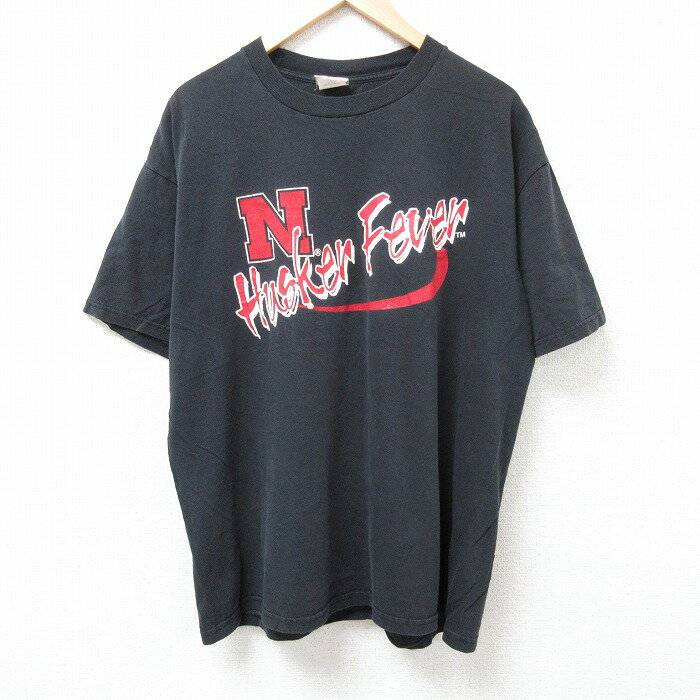 【中古】古着 ジャージーズ 半袖 ビンテージ ヴィンテージTシャツ メンズ 00年代 00s ネブラスカハスカーズ コットン クルーネック 丸首 黒 ブラック XLサイズ 中古 | 春夏 夏物 夏服 ヴィンテージTシャツ メンズファッション カットソー ティーシャツ ティシャツ 5OF