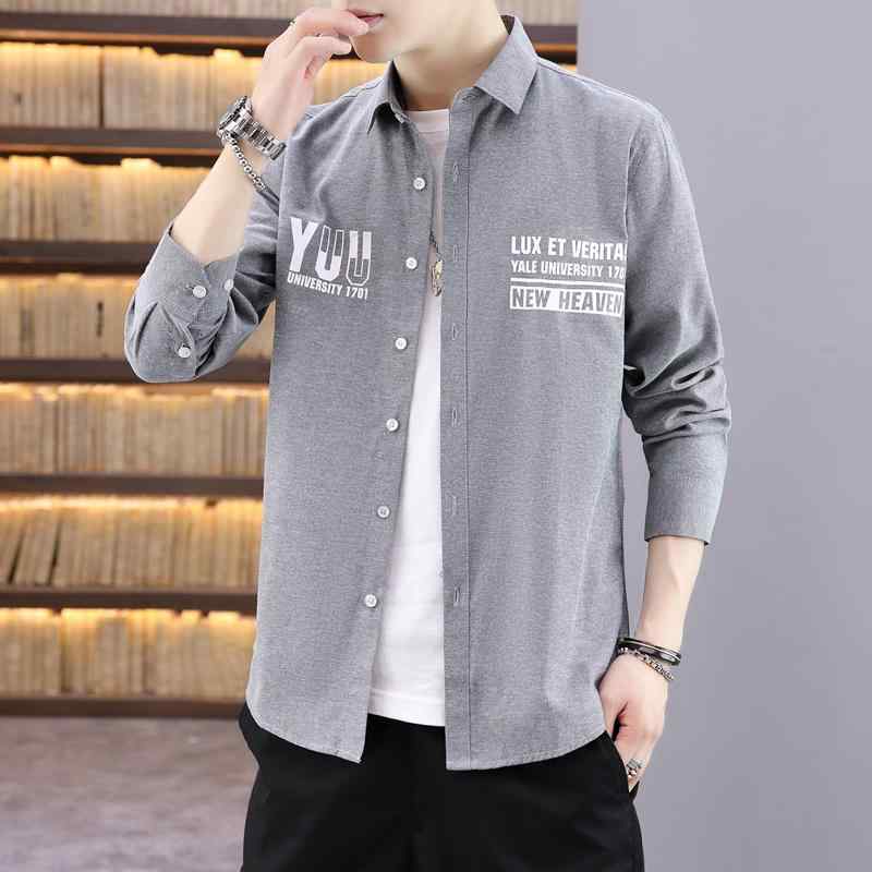 トレンディ レター プリント 長袖 コットンシャツ 秋 コットンシャツ トップス