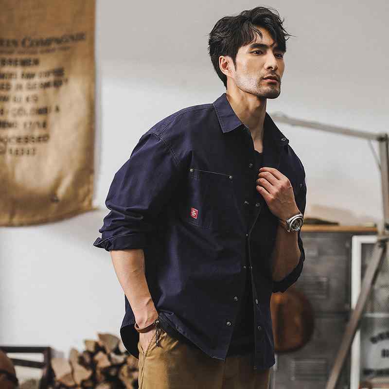メンズ ファッション 服 オシャレ シンプル 大人 かっこいい 大きいサイズ ストリート 紳士服 青 春秋 長袖 シャツ アウターシャツ 韓国スタイル ジャケット 服