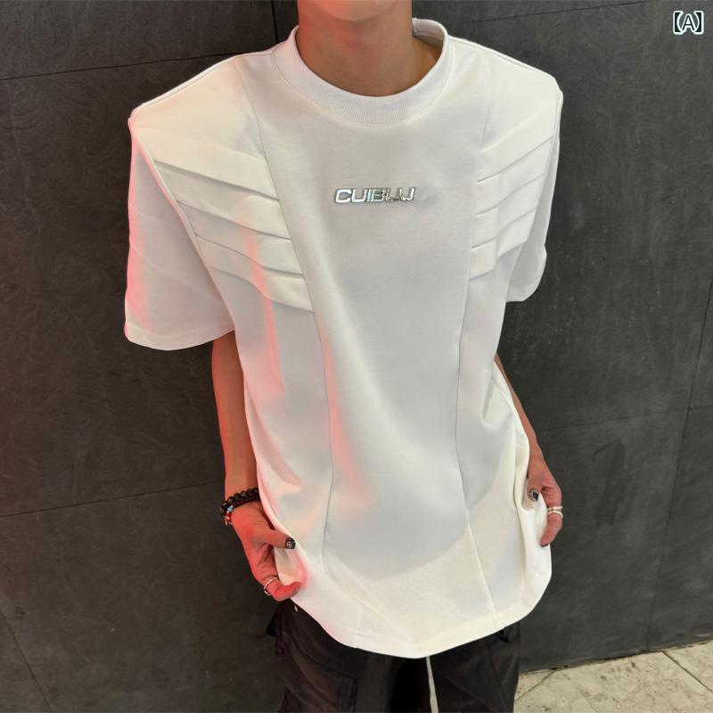 メンズ ファッション 春夏 秋冬 かっこいい オシャレ モテ 男性用 紳士服 服 韓国 シンプル 大人 クリーン フィットの 多層 構造の ショルダーパッド 半袖 メンズ 夏な ハイエンドの ゆったり 小さい ネック ラインの T シャツ