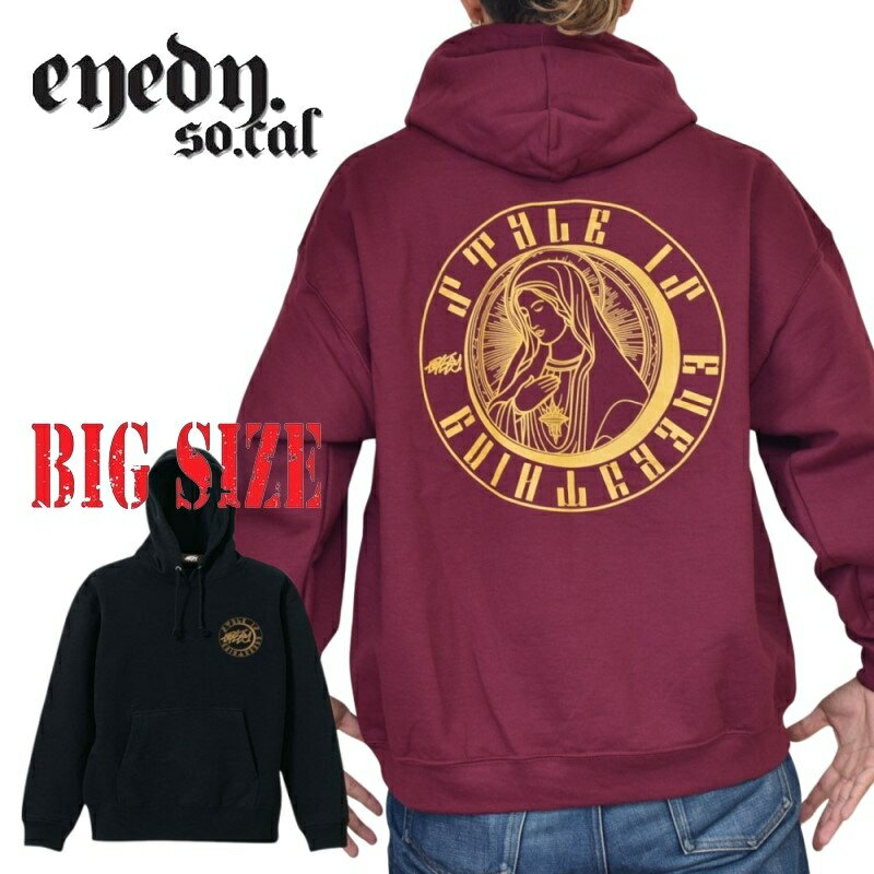 ■サイズ:XL (3L相当)■着丈:約73cm■身幅:約66cm■裄丈:約91cm■サイズ:XXL (4L相当)■着丈:約76cm■身幅:約70cm■裄丈:約94cm■素材:コットン50 ポリエステル50■カラー:[BLACK] [MAROON]■EYE-PM207EYEDY アイディーSIE MARIA マリア パーカー プルオーバー スウェット 裏起毛 黒 ブラック 8オンスの裏起毛スウェット生地を使用したプルオーバーパーカー。ロープライス、ハイクオリティを実現した限定アイテムとなっています。