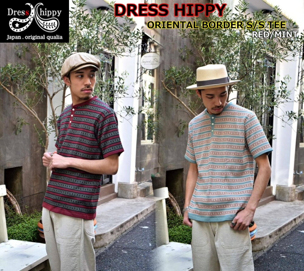 DRESS HIPPY ORIENTAL BORDER S/S TEE RED MINT ドレスヒッピー 半袖 へンリーTシャツ ジャガード ジャガードニット オリエンタルボーダー ジャガード織り ライトオンス オリジナル リブ ビンテージ