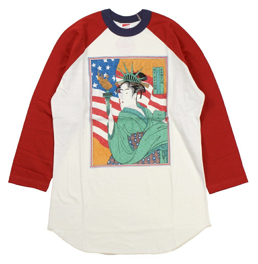 商品情報商品説明/素材FREEWHEELERS & CO.-Japanese Oriental Art Style Souvenir Collection"自由婦女人相" #2125022-・50s POWER WEAR PRINTED LABEL・4/5 RAGLAN SLEEVE SHIRT・Vintage Style Light Weight Jersey・COTTON 100%柔らかく伸縮性のある薄手のライトウェイト生地を使用しています。8分袖になります。サイズ/寸法<サイズスペック>36(S) : 身幅47cm、着丈69cm、裄丈62cm38(M) : 身幅50cm、着丈70cm、裄丈66cm42(L) : 身幅53cm、着丈73cm、裄丈70cm44(XL) : 身幅57cm、着丈75cm、裄丈73cm※若干の誤差はご了承ください。生産国日本注意事項当店は実店舗と商品の在庫を共有しておりますので在庫情報につきまして誤差が生じる場合がございます。 ご注文頂いた商品がご用意できない場合がございますが、予めご了承ください。FREEWHEELERS & CO. Japanese Oriental Art Style Souvenir Collection ["自由婦女人相" #2125022 OFF-WHITE×CHILI×FADE NAVY size,S,M,L,XL] フリーホイーラーズ Tシャツ メンズ レディース ジャパニーズオリエンタルアートスタイルスーベニアコレクション 自由婦女人相 オフホワイト×チリ×フェイドネイビー 2