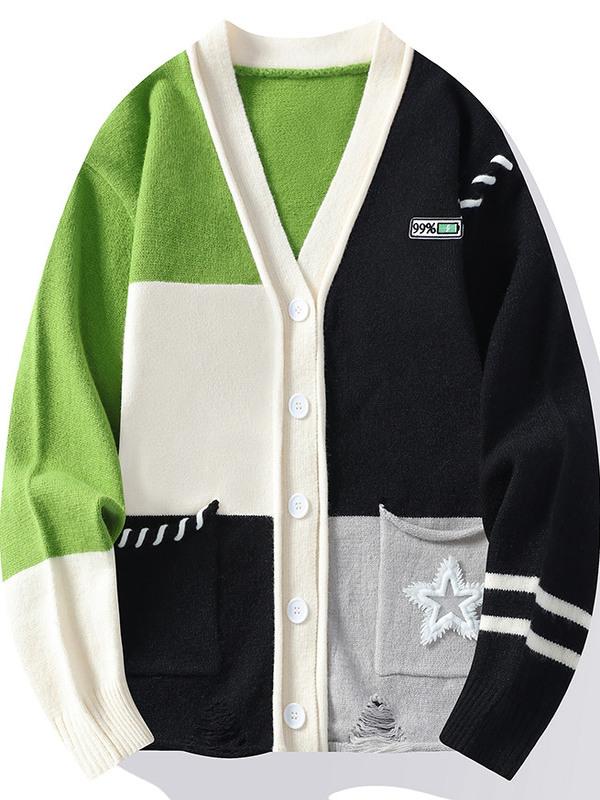 メンズ ファッション 服 男性用 オシャレ シンプル 大人 かっこいい ストリート カーディガン セーター ジャケット グリーン ジャカード カラーブロック 秋