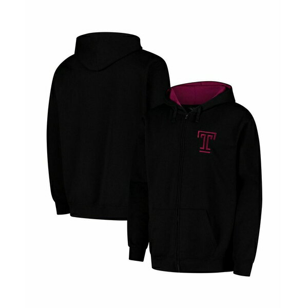 コロシアム メンズ パーカー・スウェットシャツ アウター Men's Black Temple Owls Arch Logo 3.0 Full-Zip Hoodie Black