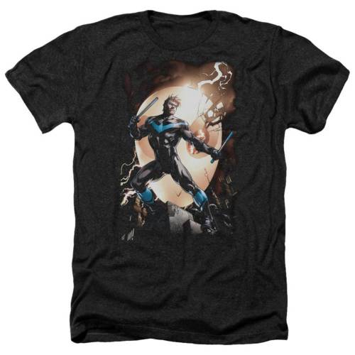 キャラクター ヘザー Tシャツ 黒色 ブラック 【 LICENSED CHARACTER BATMAN NIGHTWING AGAINST OWLS ADULT HEATHER T-SHIRT / BLACK 】 メンズファッション トップス カットソー