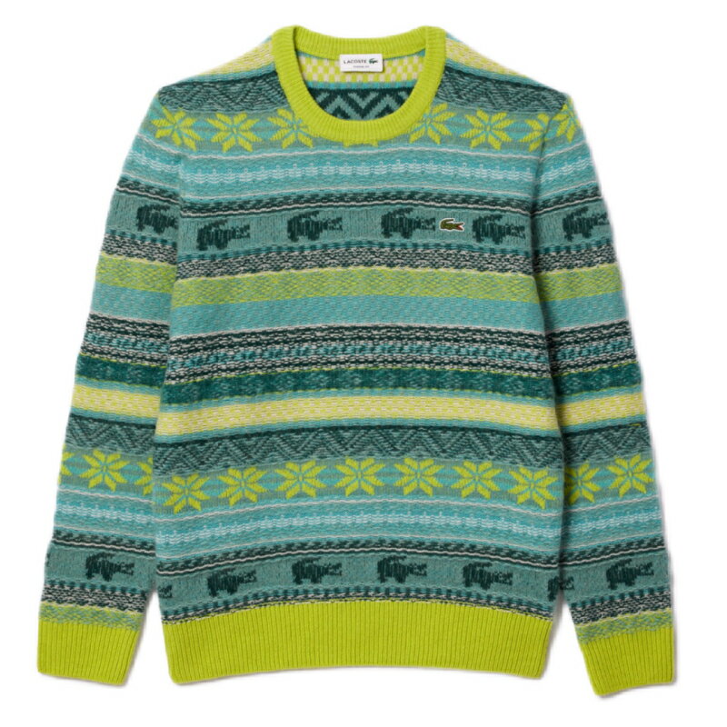 ラコステ ウール ニット セーター メンズ LACOSTE アルパカ サスティナブル フェアアイル ニットセーター 軽量 防寒 大きいサイズ ファッション ブランド 緑 M L AH5663-10-PAI