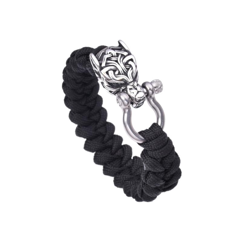 ブレスレット 男性用 バイキング オオカミ 狼 手編み パラコード チタン鋼 アニマル 熊爪 アウトドア 個性 派手 ごつめ
