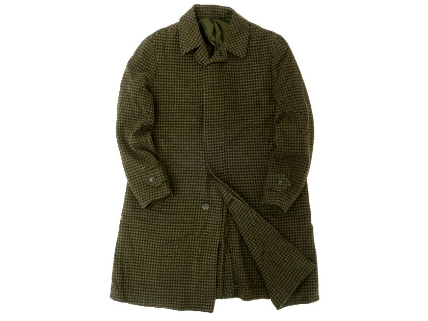 CARUSO per ISETAN MEN'S カルーゾ 伊勢丹メンズ イタリア製 ウール混 メランジ 千鳥格子 ステンカラーコート UJ594L 定19.8万 カーキ 44 ▲550▼30105k03