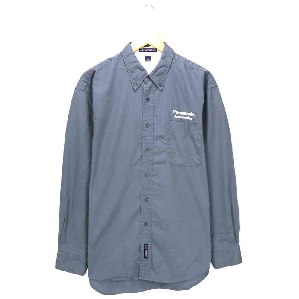 PORT AUTHORITY ツイルシャツ サイズ表記 L グレー 長袖 Panasonic 無地 ボタンダウン BD 刺繍 パナソニック ポートオーソリティ gray 灰 古着【中古】wv2101-192