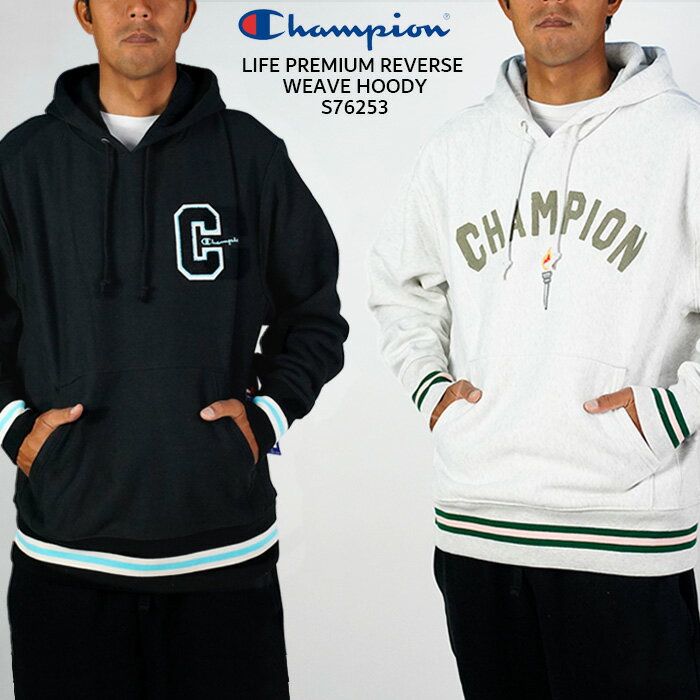 レビューでクーポン★チャンピオン USA限定パーカー スウェット Champion LIFE PREMIUM REVERSE WEAVE HOODY S76253 ライフ プレミアム リバースウィーブ フーディー Black ブラック 黒 Silver Grey シルバーグレー 裏起毛 秋冬 メンズ 男性 USA企画