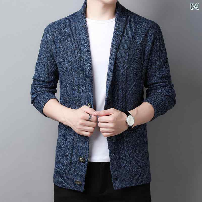 ・カテゴリ: ニット・スタイル: カーディガン・フィット: スリム・ネックライン: Vネック・袖丈: 長袖・厚み: 厚手・主な素材: アセテート繊維・カラー展開: ロイヤルブルー、チャコールグレー、ライトグレー、ライトキャメル・サイズ展開: M、L、XL、XXL、XXXL・加工: ノーアイロン・適用シーン: 日常・性別: メンズ