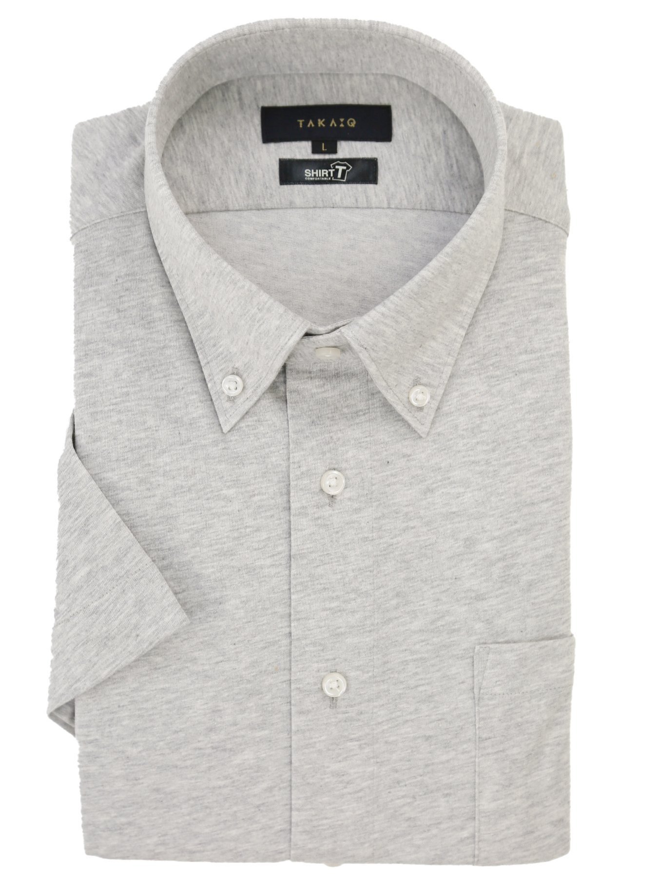 TAKA-Q SHIRT-T スタンダードフィット ボタンダウン 半袖 ニットシャツ ワイシャツ シャツ ビジネスシャツ yシャツ トップス タカキュー スーツ・フォーマル Yシャツ・カッターシャツ グレー