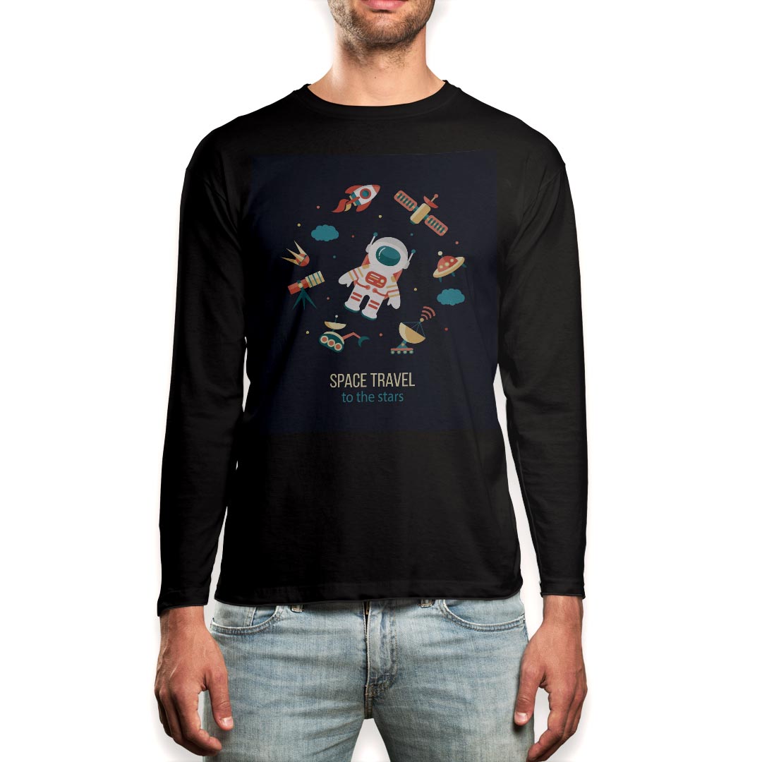 ロング tシャツ メンズ 長袖 ブラック デザイン XS S M L XL 2XL ロンT ティーシャツ 黒 black T shirt long sleeve 013222 宇宙 ロケット