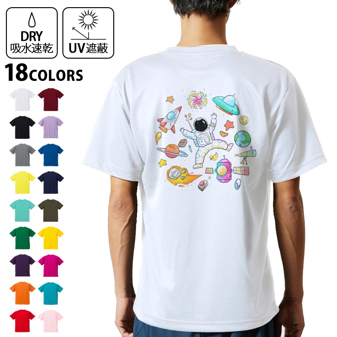 ドライTシャツ バックプリント メンズ 吸水 速乾 DRY 選べる18カラー! 半袖 デザイン 背中 スポーツ ティーシャツ T shirt 026188 宇宙飛行士 UFO 地球 ロケット