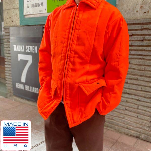 80s-90s USA製 ALL WEATHER OUTERWEAR キルティング ジャケット L 蛍光オレンジ系 アメリカ製 ビンテージ D149【中古】【古着】【メンズ】【通販】【BTOL】
