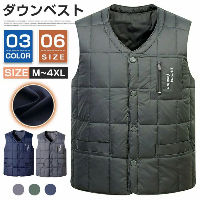 ダウンベスト TYPEA90%ダウン ベスト メンズ 2TYPE 冬 防寒 無地 ダウン ベスト おしゃれ メンズベスト 父 軽量 あったか ダウン