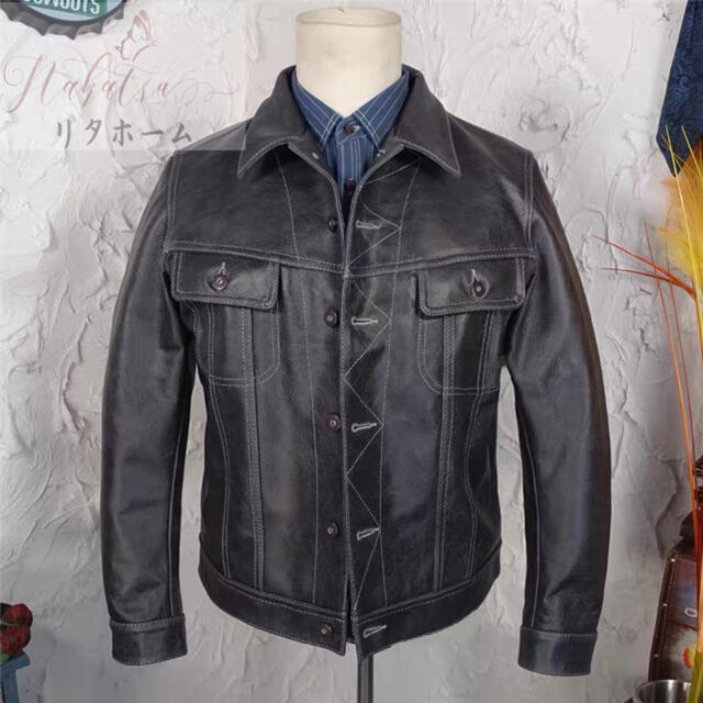 インディゴカウハイド 40's 101-Jタイプ Gジャン レザージャケット 新生活にいかがですか 商品説明インディゴカウハイド 40's 101-Jタイプ Gジャン ライダース レザージャケット Lサイズ(38) カウボーイ 牛革【商品詳細】新品未使用品です。仕様表地:カウハイド(牛革)裏地:コットンサイズ選択可能M 着丈:60CM 肩幅:44CM 胸囲:104CM 袖丈:60CML 着丈:61CM 肩幅:45CM 胸囲:108CM 袖丈:61CMXL 着丈:62CM 肩幅:46CM 胸囲:112CM 袖丈:62CM2XL 着丈:63CM 肩幅:47CM 胸囲:116CM 袖丈:63CM3XL 着丈:64CM 肩幅:48CM 胸囲:120CM 袖丈:64CM※多少の誤差はご了承お願いいたします。★色:画像通りです 2