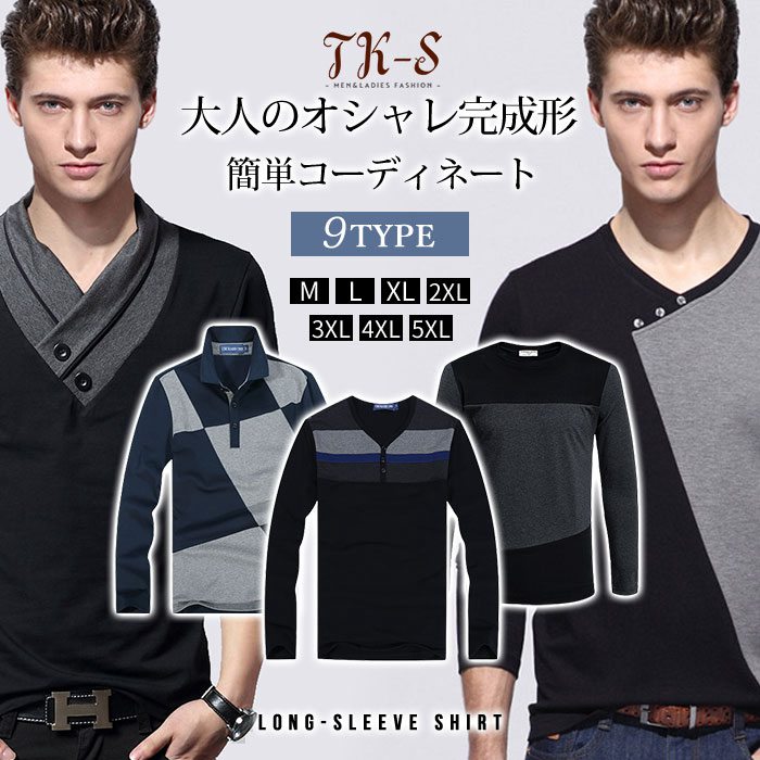 【SS限定セール】M~5XL 9タイプ選べる ゴルフウェア メンズ ポロシャツ tシャツ 長袖 春 秋 冬 ヘンリーネック 長袖 メンズ おしゃれ tシャツ ロンT Vネック コットン 吸汗 速乾 消臭 紳士 格好いい 父の日 カジュアル スポーツ キレイ目 襟付き 大きいサイズ TK-S