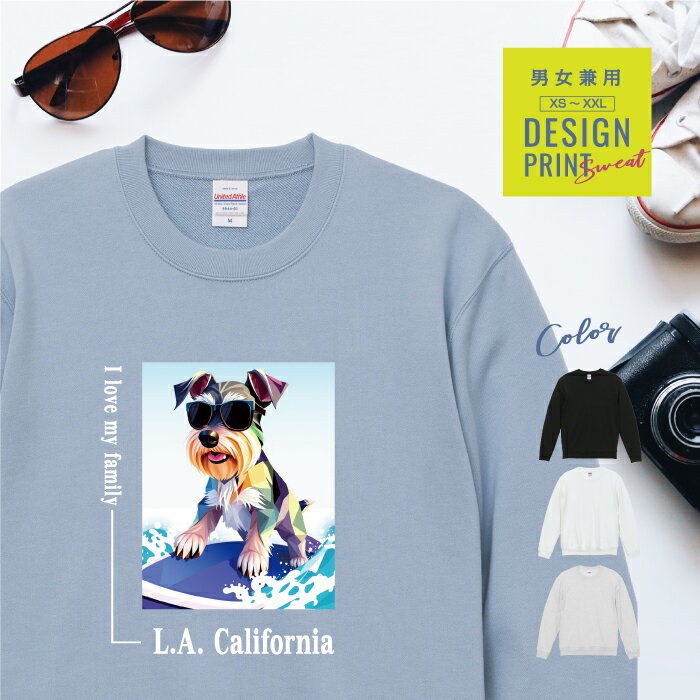 愛犬 スウェット トレーナー 犬 シュナウザー ソルト ペッパー サーフィン カレッジ 西海岸 プリント 上 服 プレゼント 誕生日 父の日 母の日 敬老の日 ギフト メンズ レディース カジュアル トップス 大きい サイズ 有り ブランド シンプル アウトドア