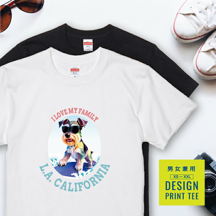 犬 tシャツ 半袖 シュナウザー ソルト ペッパー サーフィン 西海岸 カレッジ メンズ レディース ユニセックス 夏 海 ビーチ ハワイ リゾート フェス かわいい おしゃれ カジュアル 親子コーデ ペアルック 家族 ギフト プレゼント カリフォルニア サーフ アウトドア