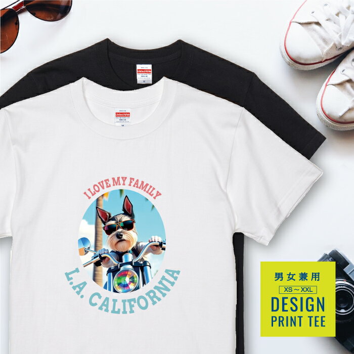 犬 tシャツ 半袖 シュナウザー ソルト ペッパー バイク 西海岸 カレッジ メンズ レディース ユニセックス 夏 海 ビーチ ハワイ リゾート フェス かわいい おしゃれ カジュアル 親子コーデ ペアルック 家族 ギフト プレゼント カリフォルニア サーフ アウトドア