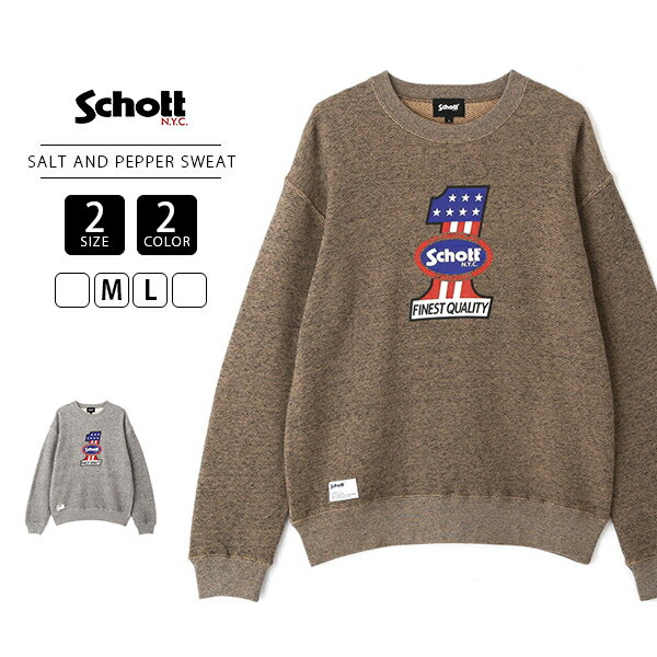 Schott ショット メンズ トップス スウェット 長袖 SALT AND PEPPER SWEAT NO.1 AMERICAN 裏毛 秋冬トップス フロントプリント 7824232010A