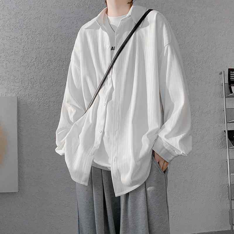 メンズ ファッション 服 男性用 オシャレ シンプル 大人 かっこいい 大きいサイズ ストリート 紳士服 冷感 ホワイト シャツ 長袖 夏 薄手 日焼け防止 ジャケット ドレープ ソルト シャツ オーバー サイズ