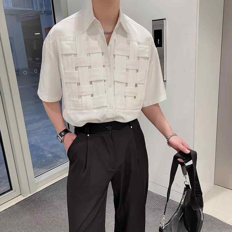 シャツ トップス メンズ スタイリッシュ おしゃれ ネット ハイエンド 織り 半袖 韓国 ソルト ボーイフレンド