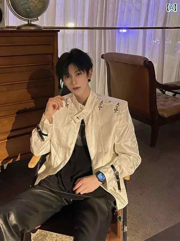 ショート ショルダーパッド入り ジャケット メンズ 秋 スタンドカラー スーツ ジャケット