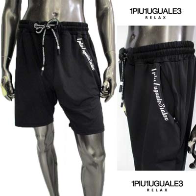 ウノピゥウノウグァーレトレ 1PIU1UGUALE3 RELAX メンズ 短パン 半パン ショーツ セットアップ可(トップス別) サイド/バックポケット/ウエスト紐部分ロゴ・バックサイド折り鶴ロゴ入りハーフパンツ 黒 USB-24011 SN90 (R13970) 421 2024年春夏新作 【送料無料】 【smtb-TK】
