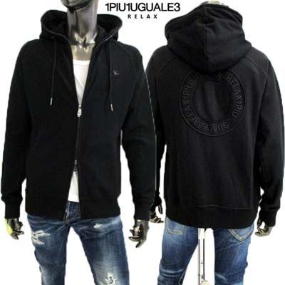 1PIU1UGUALE3 RELAX ウノピゥウノウグァーレトレ パーカー メンズ フーディ スウェット セットアップ可(ボトムス別) バックサークル刺繍ロゴ・折り鶴入りジップアップパーカー ブラック USO-25069 SN90 (R19910) 521 2025年春夏新作 送料無料 【smtb-TK】