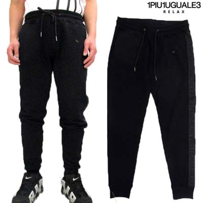 1PIU1UGUALE3 RELAX ウノピゥウノウグァーレトレ パンツ スウェットパンツ メンズ ジョガーパンツ セットアップ可(トップス別) 左サイドテープ部分同色系刺繍ブランドロゴ・折鶴入りロングパンツ ブラック USB-25071 SN90 (R17930) 521 2025年春夏新作 送料無料 【smtb-TK】