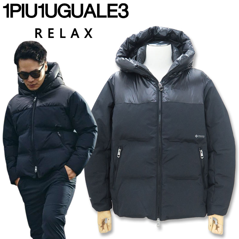 1PIU1UGUALE3 RELAX ウノピゥウノウグァーレトレ リラックス コンビ ダウンジャケット USO-23102 黒 SN90 L XL XXL 48 50 52 フード