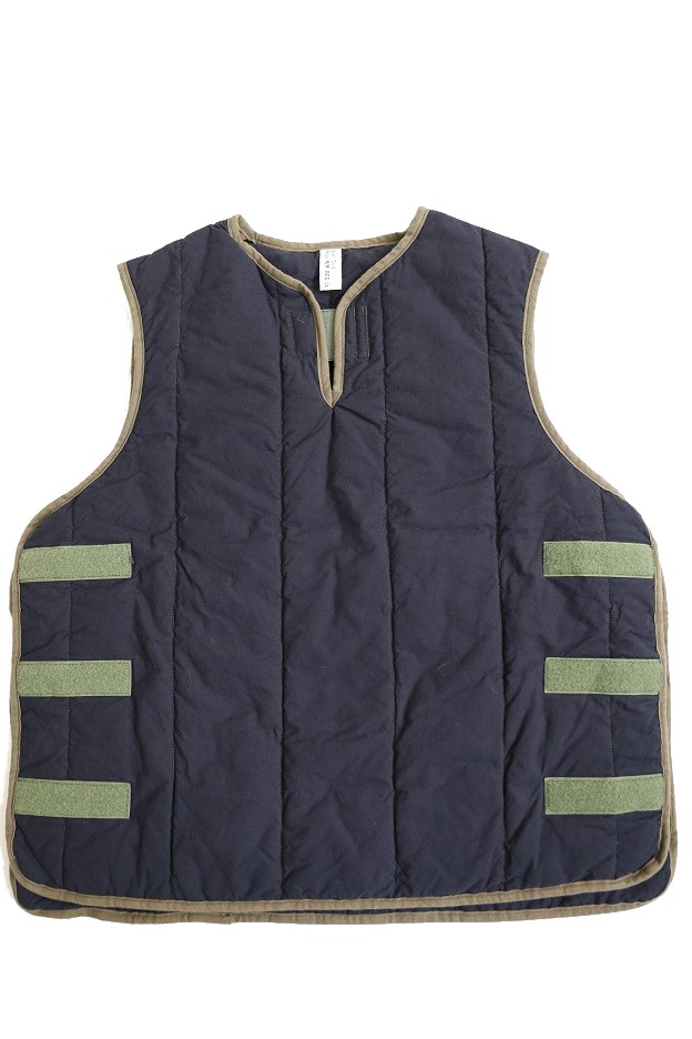 素材 表地:COTTON100% 高密度タイプライター中綿:3M Thinsulate サイズ Mサイズ:着丈60cm 身幅60(47)cm 肩幅39cm Lサイズ:着丈62cm 身幅63(49)cm 肩幅41cm ※身幅はベルクロ調整による最大幅(開いた状態)と最小幅で計測しています。 注意 ※画面上と実物では多少色具合が異なって見える場合もございます。ご了承ください。 ※この商品は店舗でも販売しております。在庫数の更新は随時行っておりますが、 お買い上げいただいた商品が品切れになってしまうこともございます。 万が一入荷予定がない場合は、キャンセルさせていただく場合もございますことを あらかじめご了承ください。COLIMBO(コリンボ) 〜Louisville Submariner's Insulation Vest〜 COL:ネイビーブルー COLIMBO(コリンボ)より『Louisville Submariner's Insulation Vest』のご紹介です。 アウトドアウェアやハンティング、ミリタリーウェアなどをもとに、タウンユースで現代衣料として着用しやすいように機能性や快適性が高められたアイテムを展開するCOLINBO(コリンボ)ブランド。 仏海軍で1970年代から支給が始まったとされる、アドオンタイプのライナーウォームベストがモチーフ。装備などを外さずに、そのまま上から重ね着が出来るように両サイドが開放可能でベルクロによりアジャストする事が出来ます。素材にはコットン100%のタイプライター生地を使用。キルティングがかけられた中綿にはシンサレートを使用しており、その細かい中空組織により薄手でも高い保温性を確保してくれます。 サイドのベルクロで調整可能なシンプルなプルオーバースタイルとなりインナーとしても、アウターとしても着用頂けます。