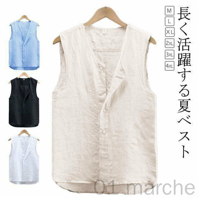 春服 メンズ 夏ベスト 前開き リゾート ベスト 綿麻 リネンベスト コットンリネン ジレ スーツベスト サマーベスト ビジネス 涼しい トップス 40代 50代 大きいサイズ 男性用 チョッキ カジュアル 綺麗め 散歩 薄手 軽量 無地 春夏着用対応 おしゃれで快適な