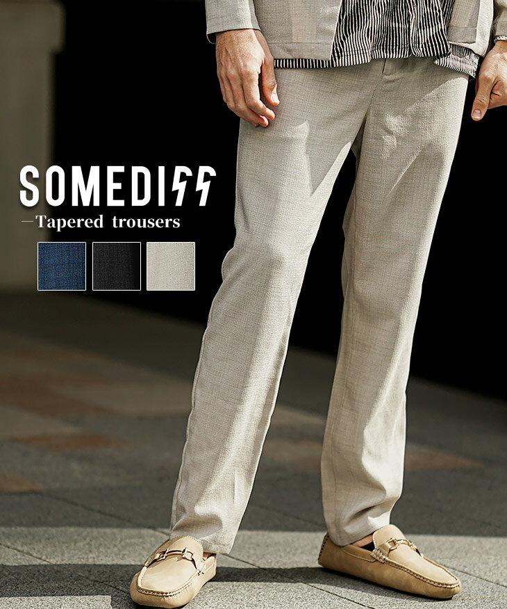 テーパードパンツ メンズ スラックス メンズ 薄手 イージーパンツ メンズ ずぼん リネンライク スーツ メンズ ウエストゴム ブランド サマーパンツ メンズ 軽量 セットアップ対応 春 春服 春物 春夏 メンズファッション リゾート お兄系 オラオラ系 ちょいワル