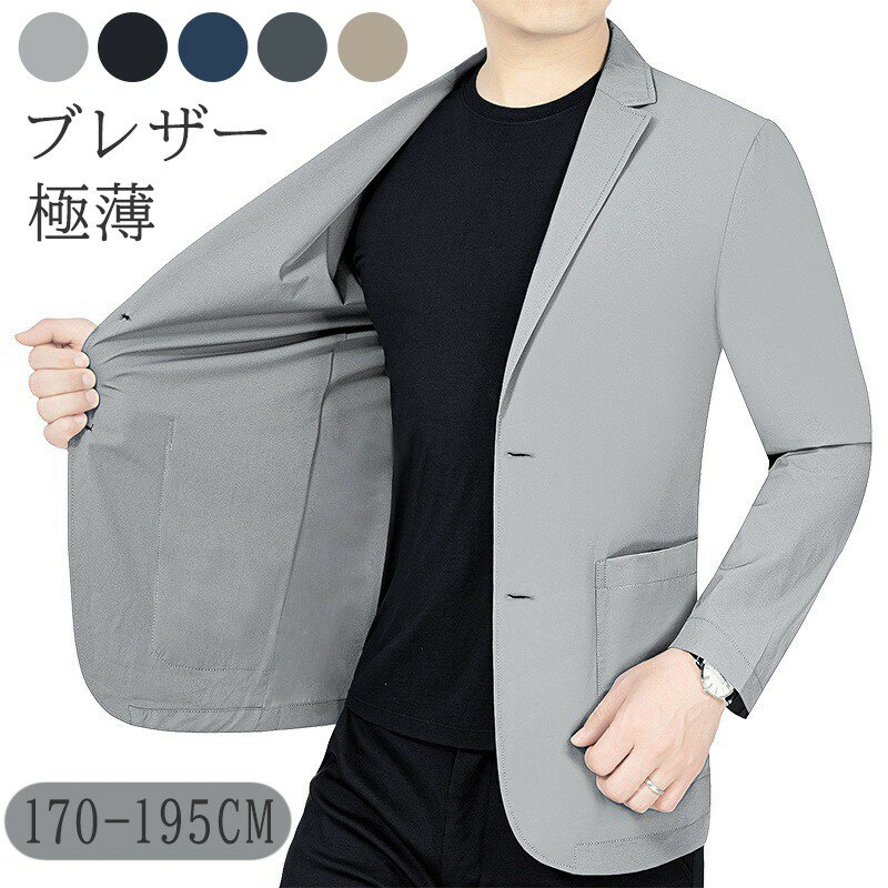 メンズ スーツ ジャケット ブレザー ビジネススーツ カジュアル スリム ストレッチ 快適素材 在宅 伸縮 耐シワ性 極薄 アイスシルク 通気性 軽量 涼感 夏用 薄手 吸汗 速乾 洗える ノンアイロン セットアップ対応 オフィス テレワーク クールビズ